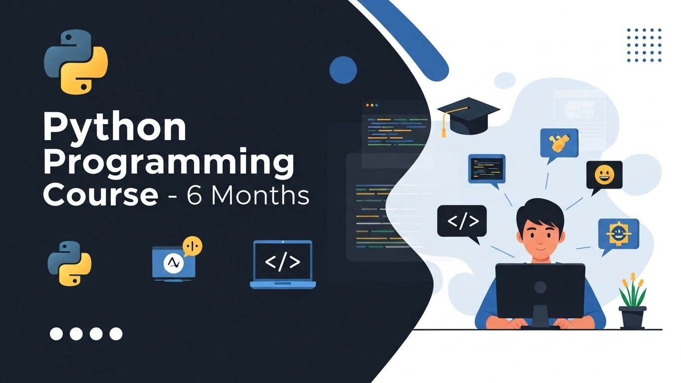 Our 6-Month Python Programming Course teaches beginners how to code with simple, practical lessons. Students learn Python basics, build real mini-projects, and create a small portfolio for freelancing. The course includes foundation programming, practical projects, simple web apps, automation scripts, and earning guidance. By the end of this course, students will be able to create useful tools like data managers, attendance systems, budget trackers, and portfolio websites. They will also learn how to offer small Python services on Fiverr and Upwork. This course is perfect for students, beginners, and anyone who wants to start a career in programming or freelancing.